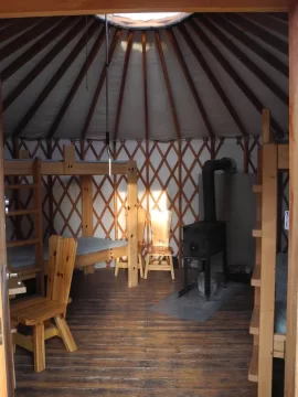 Now that we have our stove picked out, we are discussing hearth pads. Initially, we had just thought about putting down 1/8th inch steel. We are modeling our yurts after some yurts at the Porcupine Mountains in Michigan and they put down some thin tin or something below their stoves, although they built their stoves and they sit pretty high off the ground. But then we started reading the install manual and got nervous about the r-factor and if we should do something a little better. This is the Porcupine Mountain Yurt: