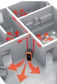Wood pellets are one of the few truly environmentally friendly ways to heat. Ducted stoves have a two extra warm air outputs at the rear of the unit and these can be connected to aluminum ducts routed other rooms in the property. A simple mechanical flap controls the ratio of air coming into the main room compared with the air being diverted to the back. All wood pellet stoves require a 13amp electrical connection. see pic below: