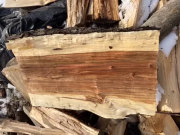 Parents’ neighbor felled a couple trees and he doesn’t burn wood, so free for me. Got a bunch of maple rounds and what looks like some kind of fruit tree but I have no clue what kind. He said he thought it was wild cherry, but the bark doesn’t look right to me. Whatever it was, the woodpeckers loved it. Split a couple open (see pictures) and it looks similar to the crabapple I have in the yard, but I thought folks here might have a better idea.