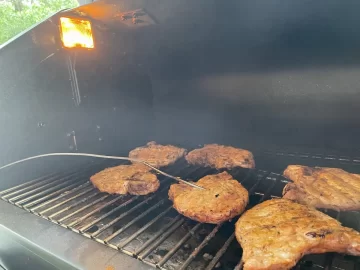 GMG Green Mountain Grills Smoked Iowa Bone In 1” Thick Iowa Pork Chops with Texas Blend wood pellets