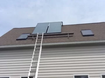 Solar is a drain back system, it uses water. When the panels reach temp a controller starts a pump and fills the panels and when temp goes down pump stops and water gravity feed back into a 15 gallon drain back tank. The d.b.t. Has a heat exchange coil connected to the 120gal. Domestic h.w.t. Solar panel water and domestic water never mix.I guess you drain the solar panels in winter? Or is that a closed system with Antifreeze?