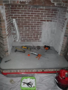 I posted a while ago at the figuring out stage of removing an old Napoleon NZ2000 zero clearance fireplace that was set into a brick alcove / hearth. We recently moved into this home, and discovered that unit was no longer serviceable. It has now been removed (the guy unfortunately went higher than necessary removing bricks so there's now more to repair. The chimney was lined with 8" clay rounds, many were cracked and they've already been removed. The brick chimney is in the house, not outside.