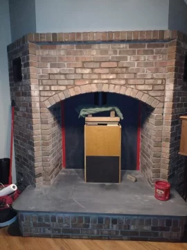 - the area is already safe and suitable for a freestanding stove (except I need to extend the hearth forwards a few inches for adequate clearance in front of the door to combustibles) All that needs to be done is make it look good.