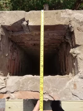 I've finally built a roof platform, removed the crown and front damper plate with an angle grinder, and hauled out the 5 inch liner so I can measure the chimney dimensions. Here is a high level summary of chimney dimensions with additional detail and photos included below to help clarify.