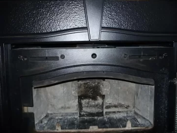 The grill should go in gently. You have to match up the clips on the grill with the holes made for it and it should go in easily. I open the door to get the grill out. someone here might have a solution otherwise call Jotul usa at 1-207-797-5912 and ask for a technician. Good luck. See page 13 of your installation manual.