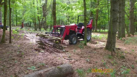 I had a bunch of dead pine branches in this area so I started the cleanup around the trails before going after 10 face cord of Ash after the leaves fall. I took three utility trailer loads to the town wood dump.