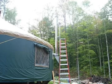 The stove sounds like it is in a weak draft situation. My guess is this is due to a short chimney with a couple 90 turns and a too long horizontal pipe. An OAK is not going to improve this. In a yurt install with a short chimney you want to do everything you can to aid draft, so that the stove works well at 40F. At 20-30F it should be working great.Looks great Jafo!