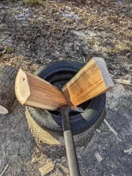 Yup smells like 80F+ inside.Got some good work done today. I love splitting red oak it just pops. I like to do a variety of sizes and shapes. Some big some small. Lots of rectangles from the bigger pieces. The variety helps with stove tetris down the road.