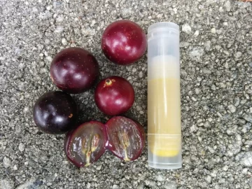 The trunk was pretty thin. Branches very long and thin. It was dropping this perfectly round dark purple fruit. The flesh was white and had a sweet taste. The juice had a light purple color to it. What tree is this?