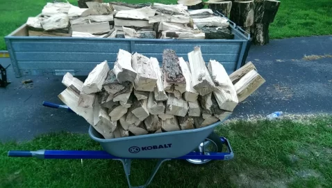 Last year was my first in my house and the first ever with a wood stove. I've used my wheelbarrow a lot for firewood hauling and yesterday my buddy showed me a trick to carry more with each load.