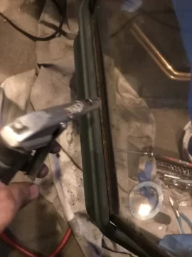 Pic 4 - Yellow Arrows show air wash slot above air wash bracket screw hole and below glass bracket screw